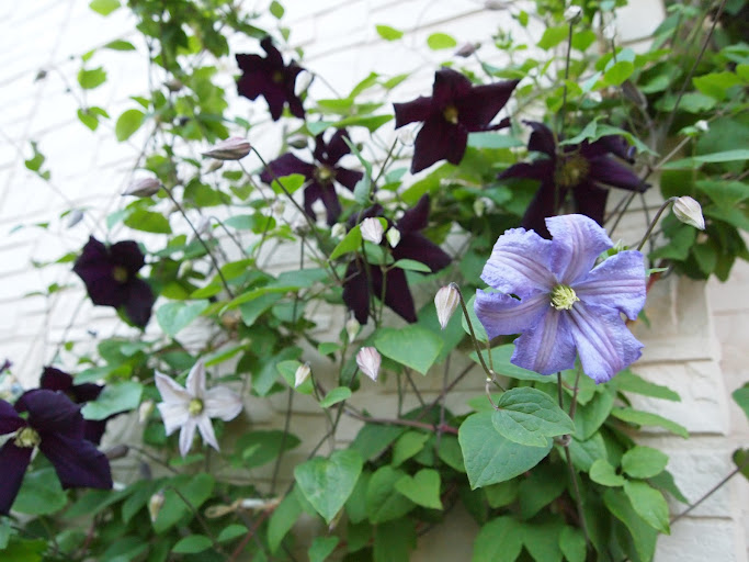 プリンスチャールズのホワイトと薄い紫が両方とも咲き出した♪ もう植えて3年ほどだが、今年は今までの中で一番つぼみが多い。